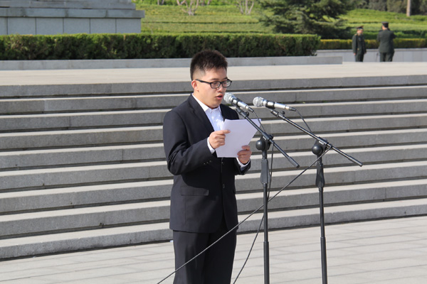 下午三时,祭扫烈士墓仪式正式开始,党员代表向烈士敬献花圈,全体党员肃立默哀,随后由党委委员杨华领誓,全体党员重温入党誓词。