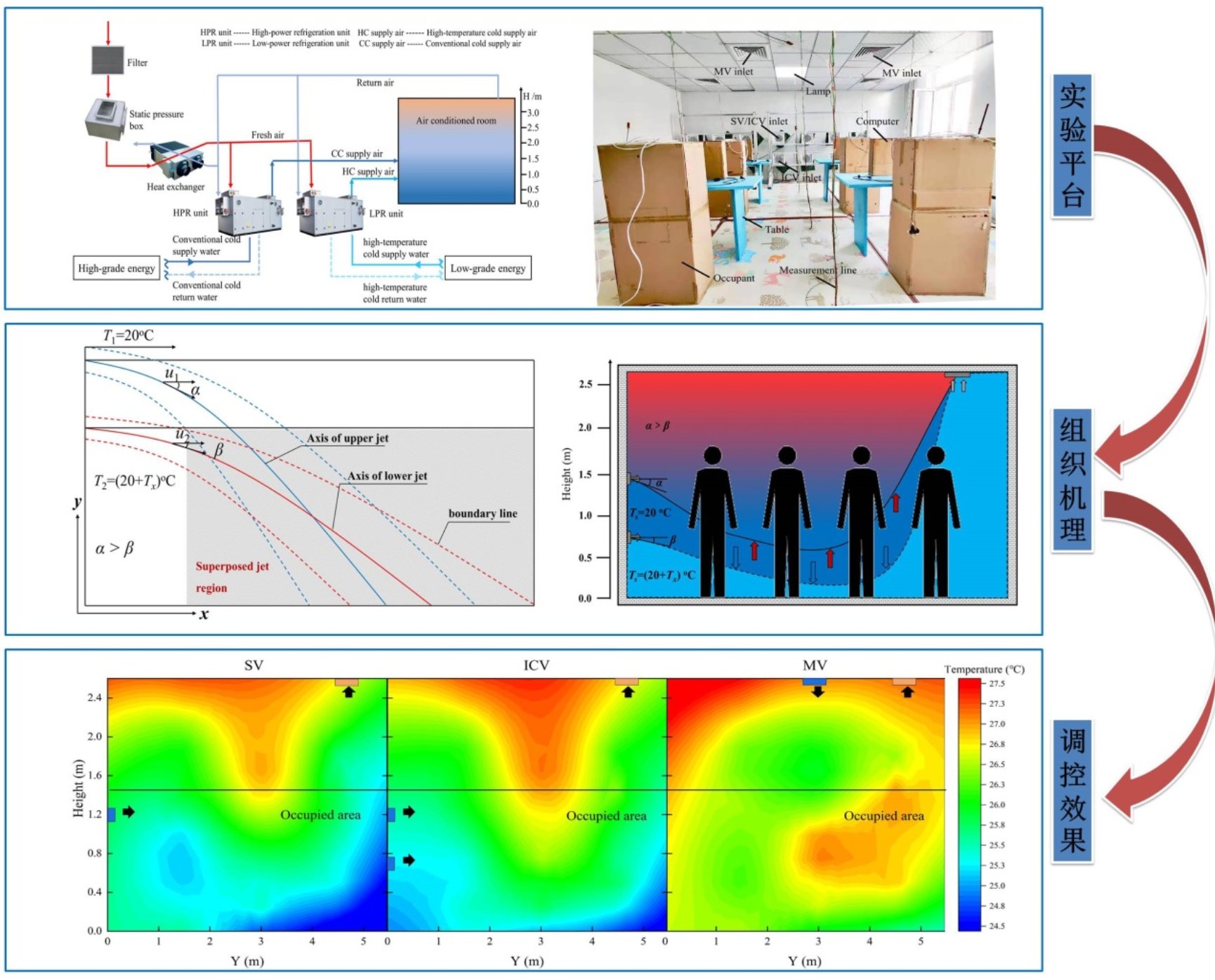 针对传统机械通风模式所展示出的不足,以需求导向负荷分级构想为前提,结合多品位能源梯级利用,通过构建不同层级射流间温度梯度引导浮力通量作用方向转变,进而促使浮升力“转劣为优”,提出新型能质流梯级气流组织,引入多质热能协同供能机制,拓展非均匀室内微环境调控理论,解决空调健康、舒适与节能耦合的难题,探索通风平疫联动新思路,丰富了机械通风空调理论内涵,开拓室内微环境营造与调控新思路,攻克通风平疫联动现有瓶颈。