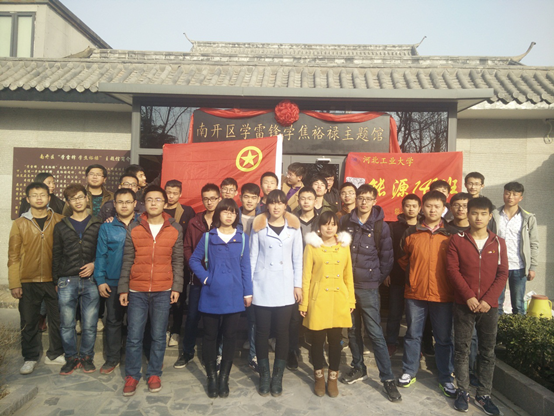 2015年3月15日上午,能源141团支部抵达南开区长虹生态园雷锋主题馆,进行参观,了解了雷锋事迹,学习雷锋精神。参观结束后,同学们异常激动,决定发扬雷锋精神。主动维护了场馆内卫生,并开始主动维护长虹生态园的卫生,并且为公园里的树木制作了爱护树木的牌子,同学们的热情让我们知道雷锋精神将被永远传承下去!