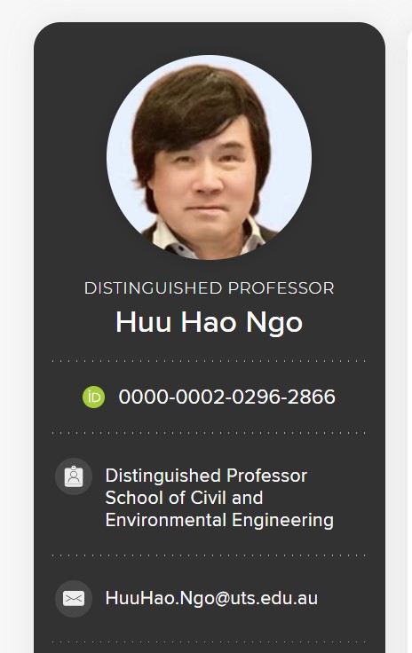 Huu Hao Ngo教授是悉尼科技大学(UTS)土木与环境工程学院环境工程杰出教授,水与废水技术中心副主任,环境绿色生物工艺联合研究中心联合主任。国际生物工艺协会会长、国际生物工艺协会杰出会士、国际水协会会士。Hao的专业知识和实践经验包括高级生物废物/废水处理工艺、基于循环经济的绿色技术、资源回收、生物能源、废物最小化和净零排放、膜技术、替代水资源和环境影响评估。