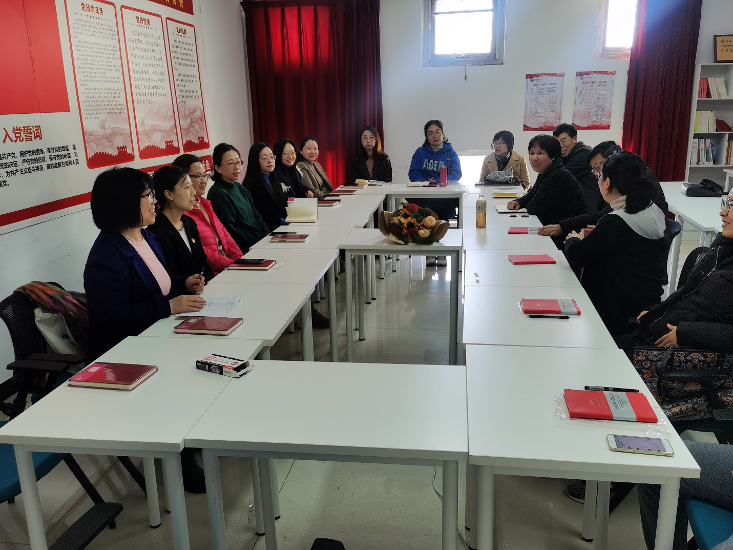 首先,公共英语教学二部党支部书记万红芳和环境工程系党支部书记王美艳依次对支部党员做了简要介绍,增进了相互了解。