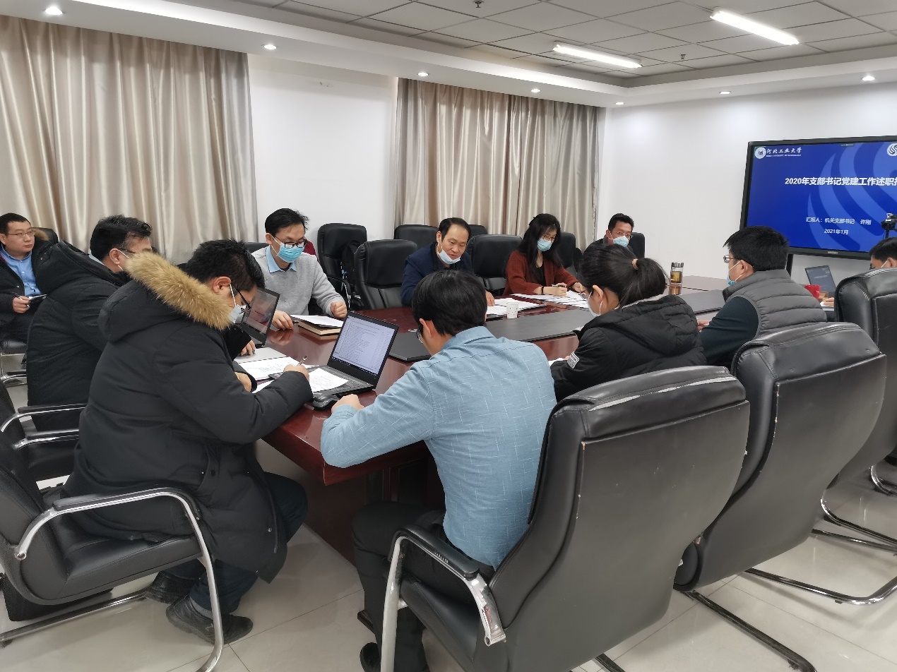 本次教工党支部2020年度党支部党建述职评议考核工作会议采取线下与线上相结合方式进行。机关党支部、能源系教工党支部、建环系教工党支部、环境系教工党支部、环保系教工党支部的分别从班子建设情况、教育管理情况、活动开展情况、制度落实情况和作用发挥情况五个方面对2020年度的工作做了总结,对查摆出的问题做了深刻分析并制定了切实可行的整改方案。商植桐书记在每位支部书记述职后分别进行了点评,在肯定成绩的同时,也指出各党支部的不足之处和今后党建工作的着力点。