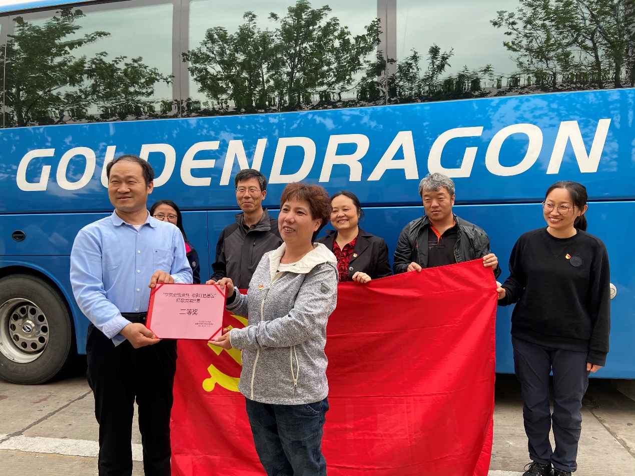 在赴往西柏坡途中开展了红歌竞唱活动。一首红歌,一段历史。一首红歌,一面旗帜。红歌是中国革命历史真实的写照,它是激励我们继续奋斗的号角!红歌是一种呼唤,呼唤红色精神。这种精神经过历史的沉淀早已根植人心。教工党支部和学生代表团分别释放激情,唱响红色经典。《团结就是力量》《我爱你中国》《我们走在大路上》……大家唱响一首首耳熟能详的红色经典曲目。大家歌颂着民族自强不息的伟大精神、阔步向前的豪迈气概,唱出了对党、对祖国、对社会主义的浓厚深情和热情讴歌,歌声催人奋进,气势振奋人心。经过角逐,学生党支部获得了一等奖,环境建环党支部获得二等奖,商植桐书记为他们颁奖。