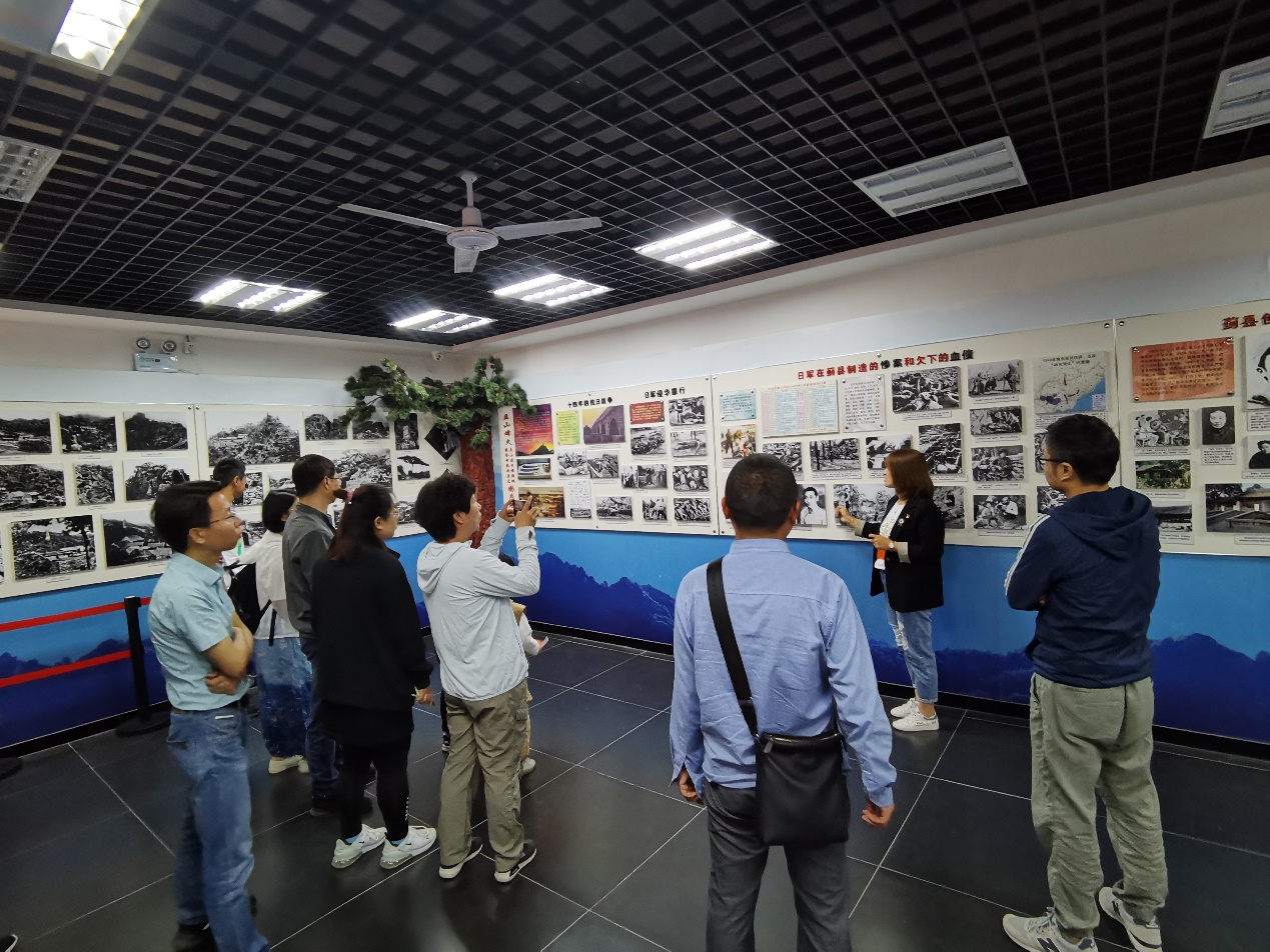 在展览馆讲解员的讲解下,党支部教师们认真参观了“盘山烽火”图片展览,追忆了联合村全民抗战的英雄业绩,了解到八路军十三团、冀东抗日名将包森、莲花峰七勇士的英勇事迹和莲花峰狙击战、白草洼歼灭战、果和沿围歼战、暴岭庙突围战等光辉战例。