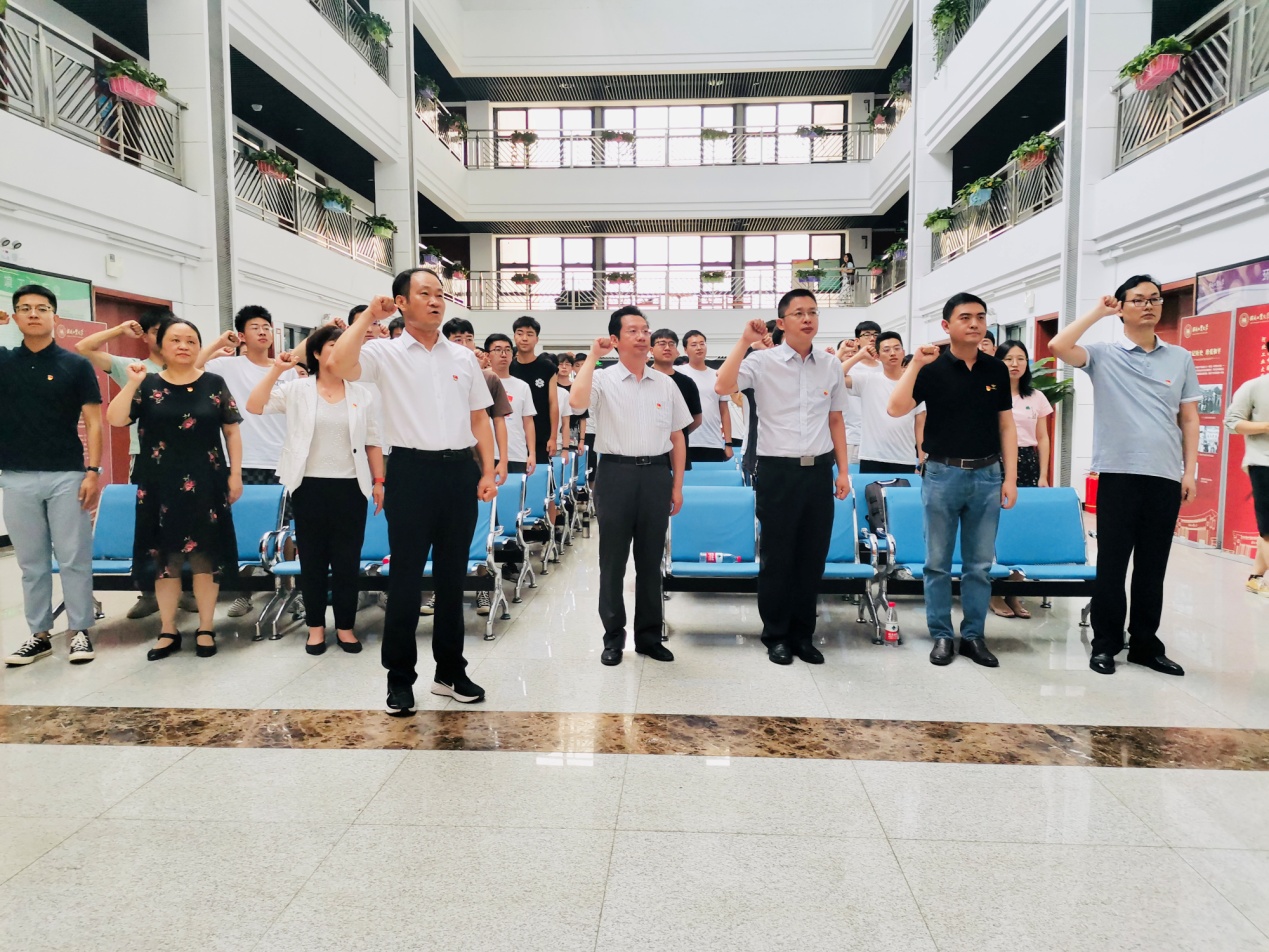 收看直播盛况结束后,探花系列 集中举行了隆重的新党员入党宣誓和老党员重温入党誓词活动,学院全体党委委员带领新老党员庄严宣誓:“我志愿加入中国共产党,拥护党的纲领,遵守党的章程,履行党员义务……”党员们的庄严宣誓,字字铿锵、句句有声,表达了对党的忠心和为共产主义事业奋斗终身的决心。
