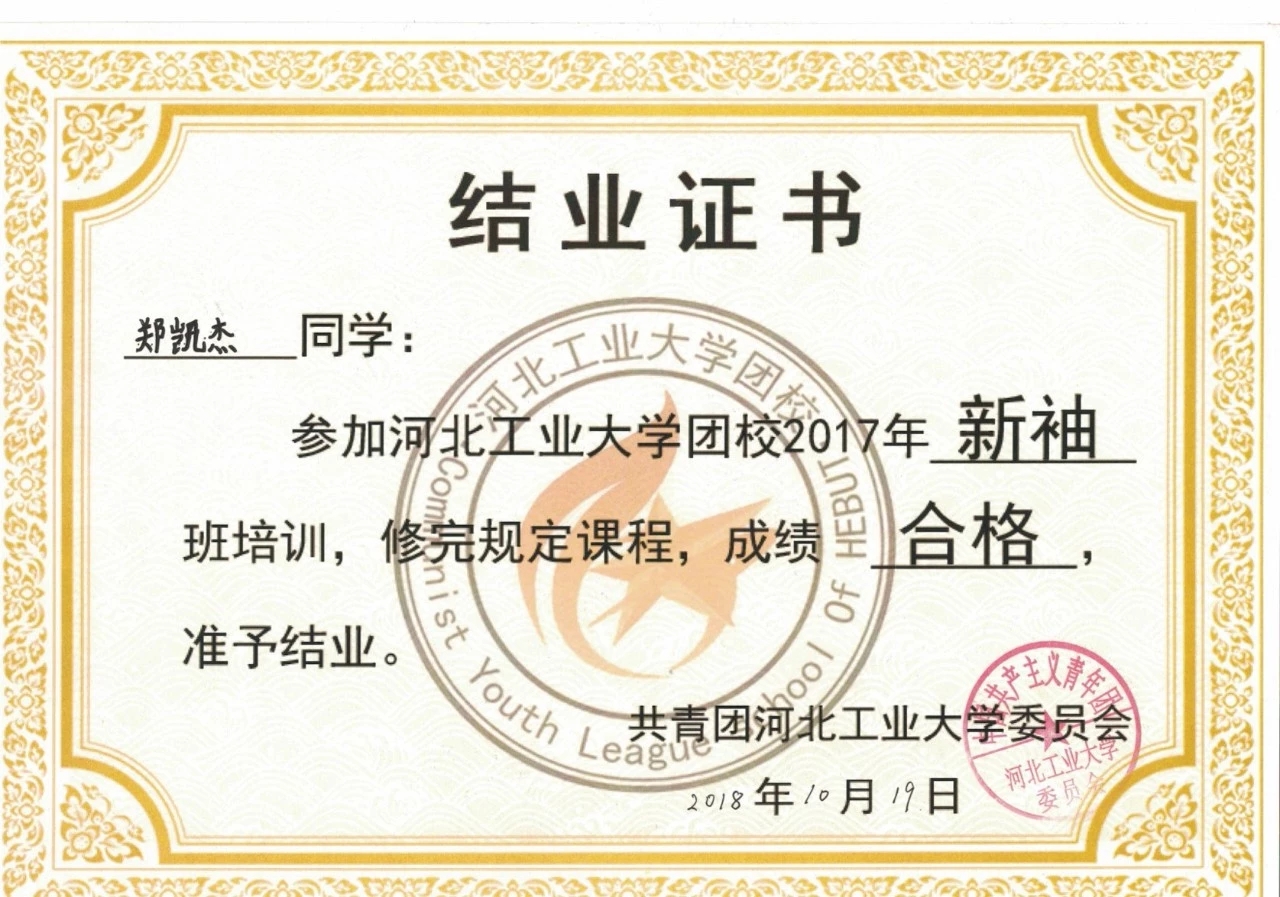 作为学生,他深知学习是自己的天职。他努力学习,六学期综合学分绩点3.71,位列专业第三。连续两年获得校二等奖学金,同时获得国家奖学金、国家励志奖学金,获西交、哈工大两所C9高校通行证,最终被保送至哈尔滨工业大学攻读硕士学位。