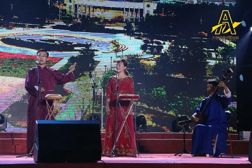 自从进入大学以来,他以弘扬传统文化为己任。谱曲编写乐亭大鼓《河工故事》拍制了MV,为党的十九大胜利召开献礼,并创作第二版《河工故事》,登上了校迎新晚会的舞台,受到学校师生的一致好评。
