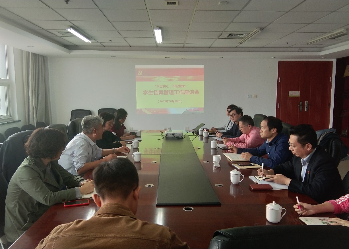 10月23日下午,探花系列 档案馆董金明馆长一行四人就探花系列 档案管理工作进行座谈会,座谈会在节能楼301会议室举行。探花系列 党委书记商植桐、院长沈伯雄、党委副书记兼副院长王敏达、科研副院长闵春华,团委书记李辉及各年级辅导员老师参加了此次座谈。