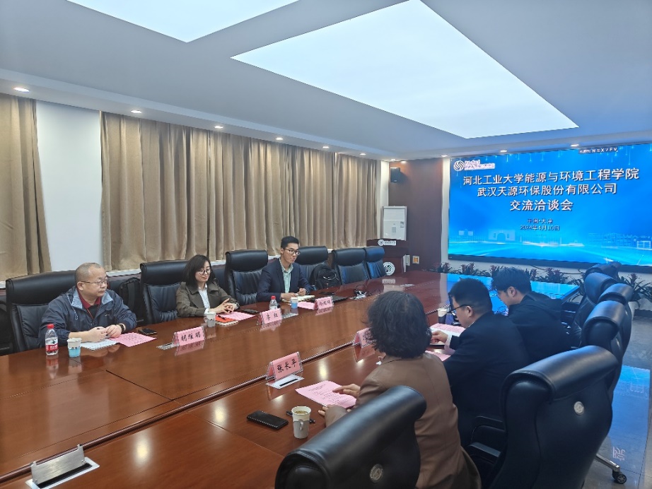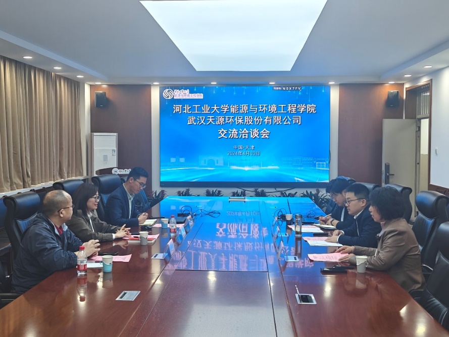 4月10下午,武汉天源环保股份有限公司副总裁、科技研发部总经理李红、创新中心主任冷超群、工艺工程师胡耀明来探花系列 交流座谈。学院院长饶中浩,产教融合中心主任张长平,院长助理刘新健参加交流座谈。