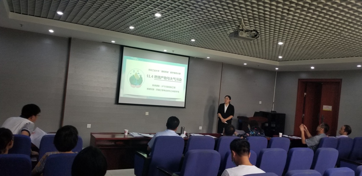 说课展示活动中,各位教师采用多种方式在教学设计与教学实施诸环节中呈现所蕴含的思想政治教育元素,将思想政治教育理念融入课程教学各环节。例如,金凤云老师利用提前发布的小组任务,将新冠病毒在建筑排水系统的传播途径进行分析,让学生在学习专业知识的同时关注社会要点问题,也培养学生的民族自尊心和家国情怀;张长平老师在对“环境保护的主要途径及旨在预防污染的清洁生产”中垃圾分类管理中引入“光盘行动”,要求学生珍惜资源,从点滴做起;许连飞老师通过列举科学家执着追求与奉献精神,从流体力学角度理解生态文明观;杨建成老师在工程热力学课程中强调理论来源于实践,实践是检验理论的唯一标准的认识观。