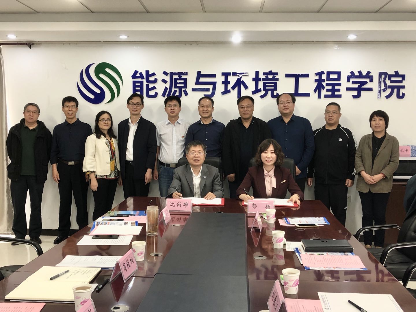沈伯雄院长在致辞中向彭镇长一行表达了热烈的欢迎,介绍了学院完备的本硕博人才培养体系、业务能力突出的专家型教师教授梯队和在节能环保和新能源领域的国际先进研究技术,有方法、有实力、有信心协助坨里镇解决面临的污水处理、固废处置和可再生能源利用等方面的难题,对与坨里镇的进一步合作充满期待,表示学院一定会举全力、助发展、共进步,尽快与坨里镇政府实现科技合作,为乡村振兴和地方经济建设发展做出贡献。