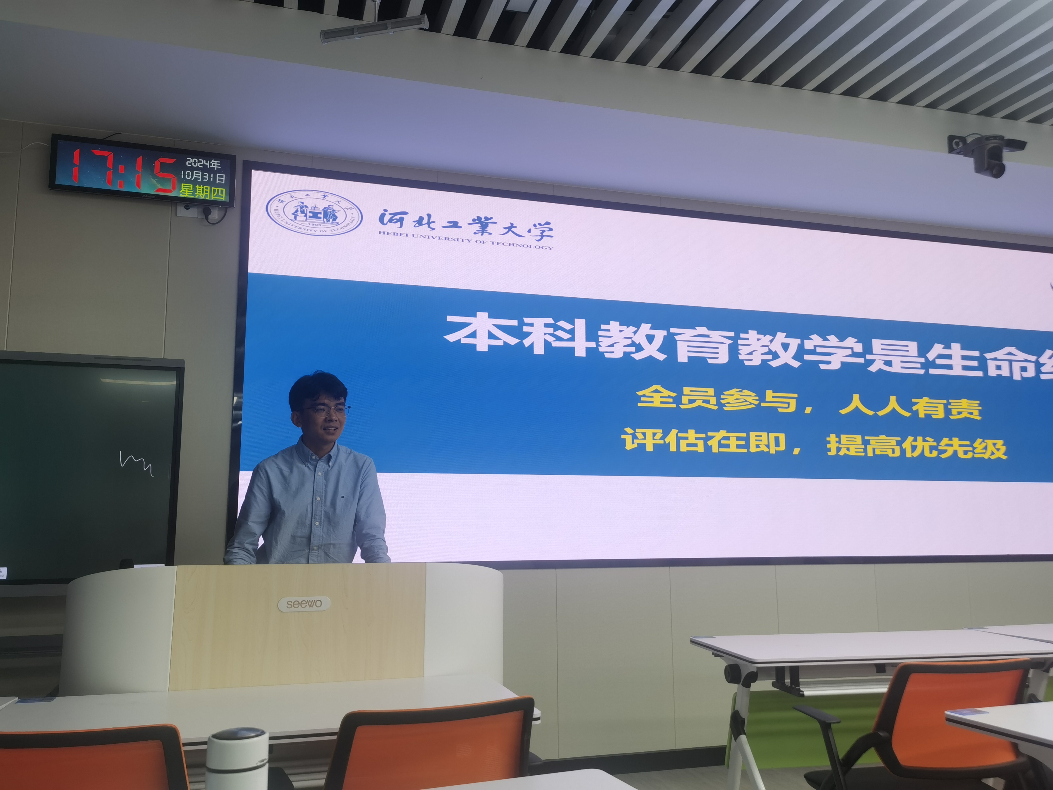 2024年10月31日下午4点,学院在北辰校区教学楼E201召开全院大会暨本科教育教学审核评估动员会。学院领导班子全体成员,全体教职工参加会议。会议由学院副院长王坤主持。
