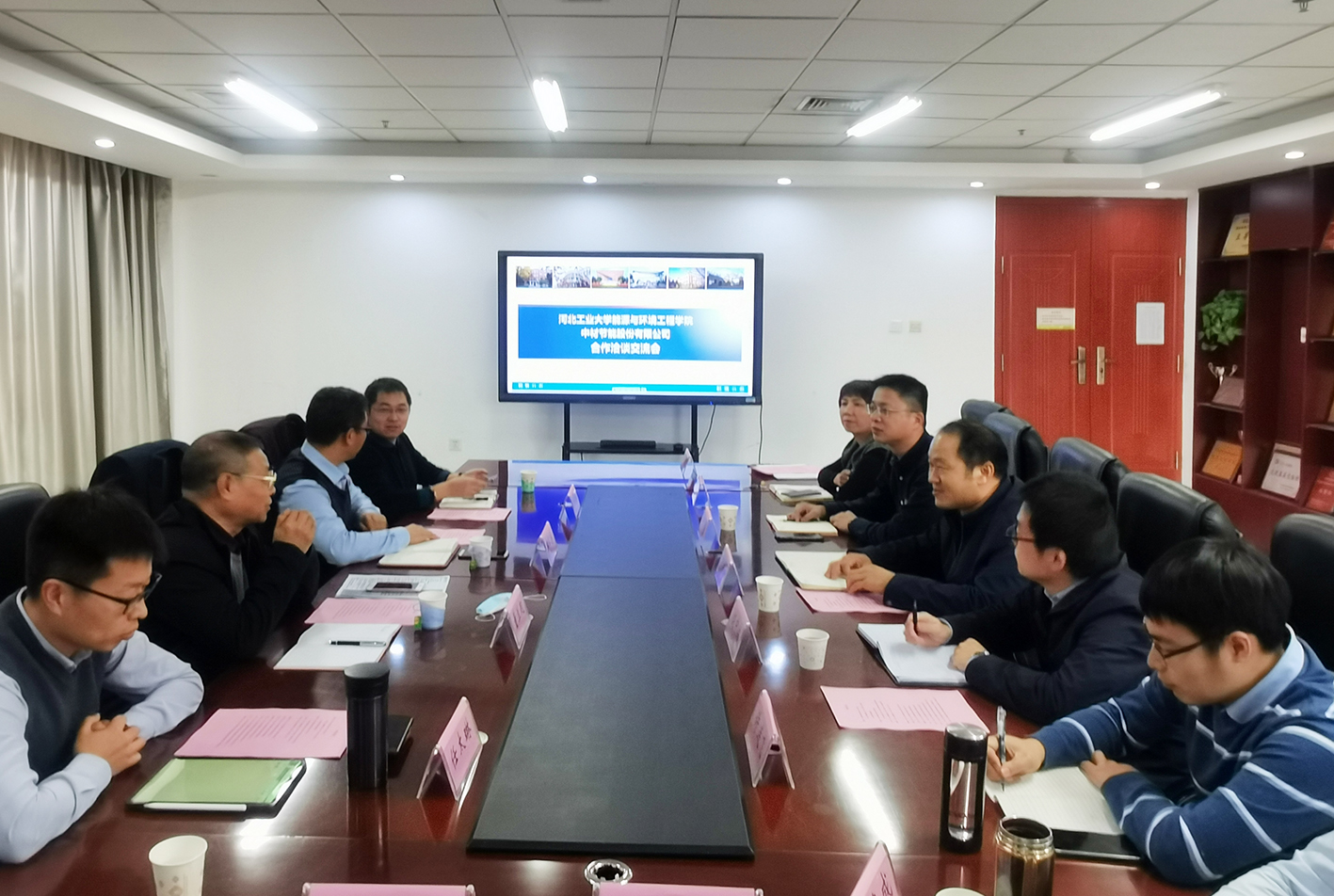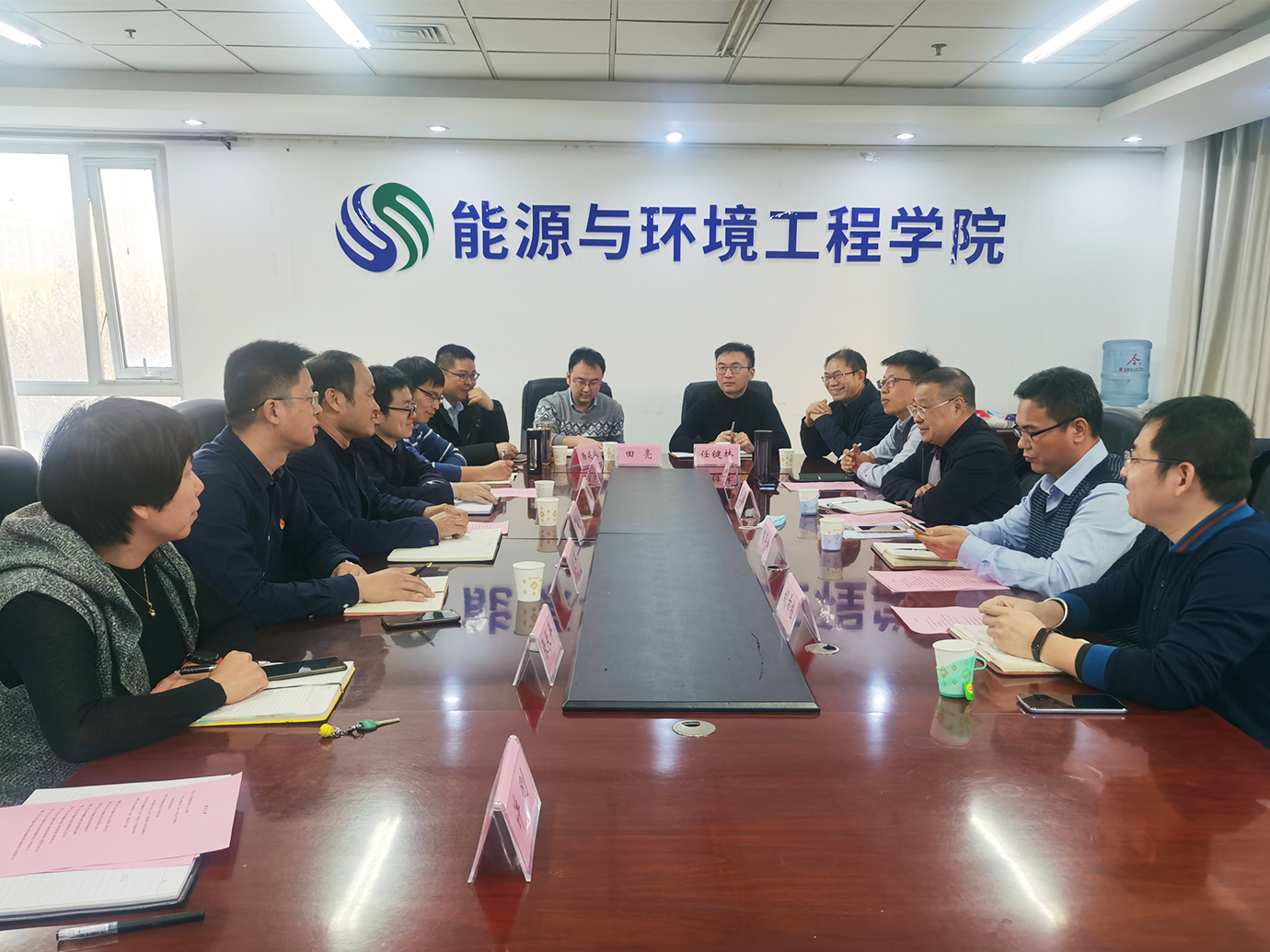 11月25日下午,中材节能股份有限公司总工程师兼中央研究院常务副院长董兰起、中材节能股份有限公司首席专家兼中央研究院副院长陶军普、中材工业储能科技(天津)有限公司常务副总经理任太琳 、中材工业储能科技(天津)有限公司总监胡希栓一行4人来探花系列 交流座谈。学院党委书记商植桐,副院长饶中浩、任芝军,院长助理杨建成,办公室主任许刚,环境系主任张长平,环保系党支部书记许连飞,能动系副主任田亮,建环系副主任任键林等参加交流座谈。